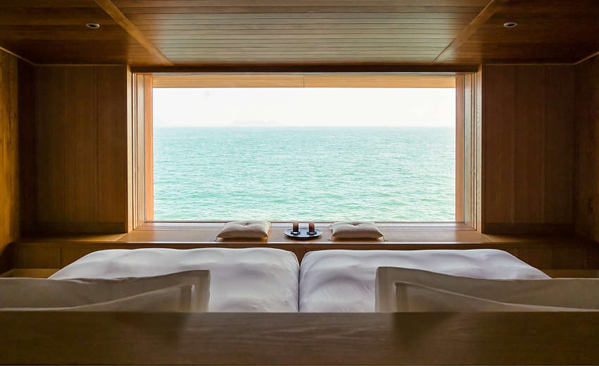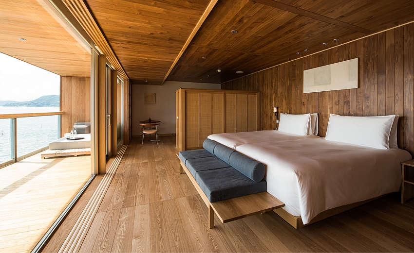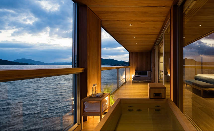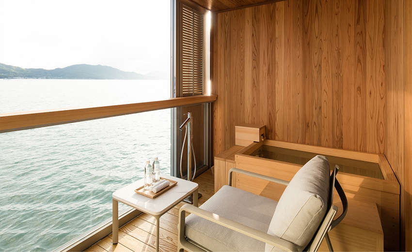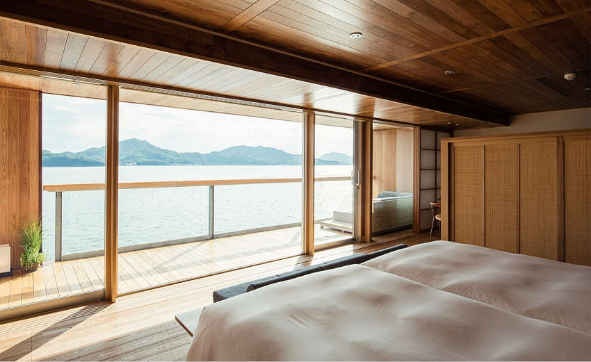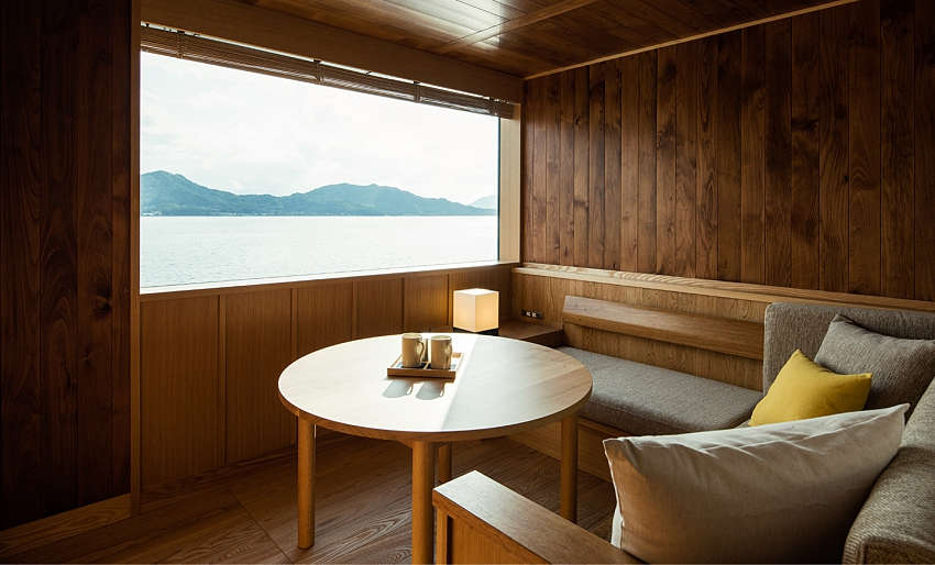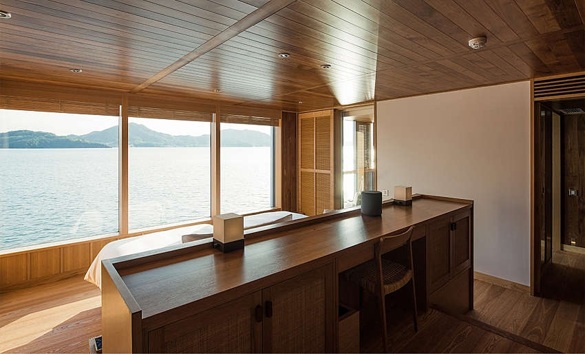 船身采用銀色基調(diào),使船體隨著海洋轉(zhuǎn)換色調(diào)、與周遭景致融為一;客艙共有四款房型,藉由大量木造呈現(xiàn)海面平靜意象,每間房皆擁有露天陽(yáng)臺(tái),讓人們?cè)诔錆M日式風(fēng)味的房間中,細(xì)細(xì)感受緩慢流動(dòng)的時(shí)間與海景,賦予游客靜謐溫暖的感受。