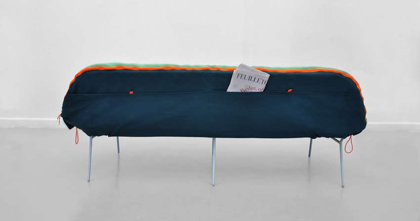 瞧瞧這張 Camp Daybed 說(shuō)穿了就一只長(zhǎng)腳的巨大睡袋,拉開(kāi)拉鍊就能睡,不怕地面凹凸硬邦邦也不需要另外找地方收棉被。較深的座位到晚上就是寬敞的床鋪,背后還有能放小枕頭或書(shū)報(bào)的收納口袋。