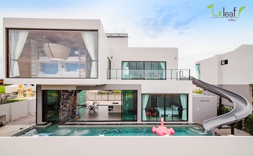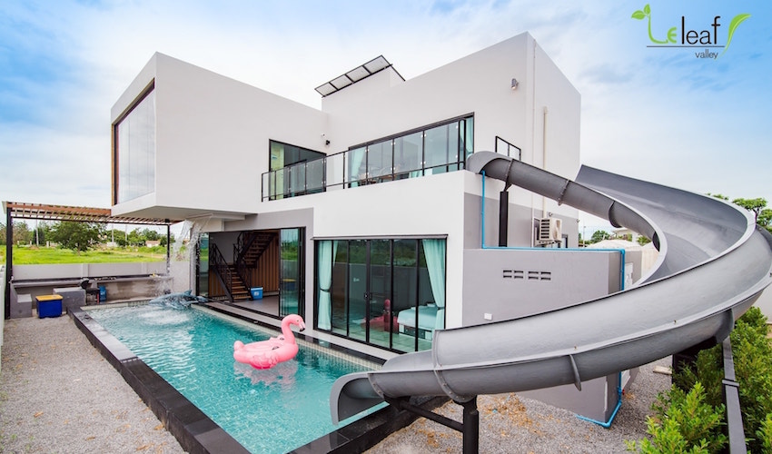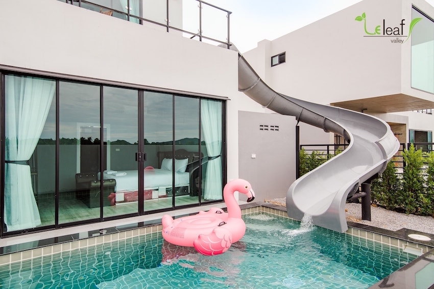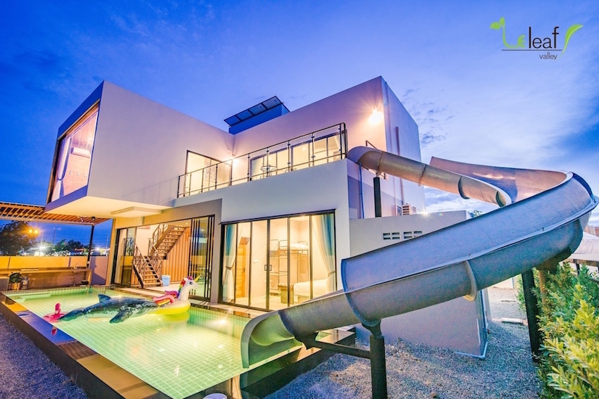 從陽臺一溜入池!泰國滑水道泳池民宿