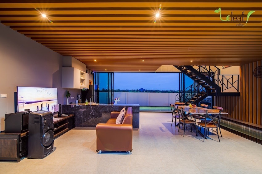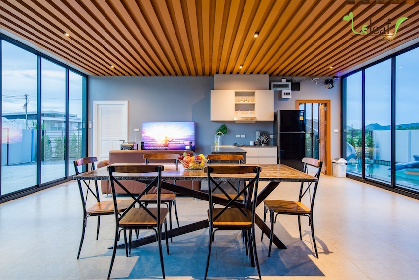 您心中的夢幻別墅有雛型了嗎?不妨考慮從頂層露臺蓋一道滑水道,這棟泰國民宿距離華欣夜市僅有 15 分鐘車程,敞開互通前后院的落地大窗,實現(xiàn)返家直奔泳池的沖刺快感!