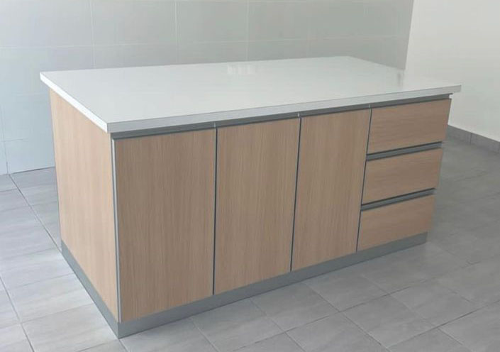 如果空間允許,您可以考慮在L型廚房中加入一個中島。中島可以用作額外的工作臺面、用餐區(qū)域或社交空間。確保中島的尺寸和高度與L型廚房相協(xié)調(diào)。
