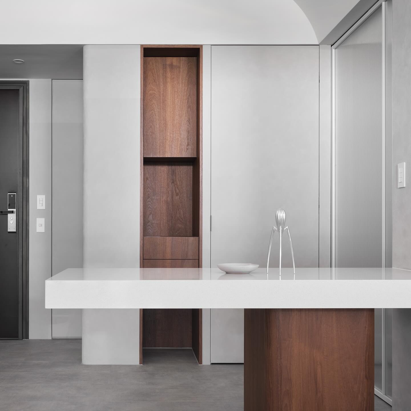 這些柜子采用推拉或輕觸開(kāi)啟的機(jī)制,使得打開(kāi)和關(guān)閉柜子更加輕松。這種設(shè)計(jì)也減少了視覺(jué)上的混亂,使整個(gè)房間看起來(lái)更為整潔和井然有序。沒(méi)有把手,柜子表面呈現(xiàn)出一種連貫的、平滑的外觀,令人不禁想要靠近、觸摸、感受。