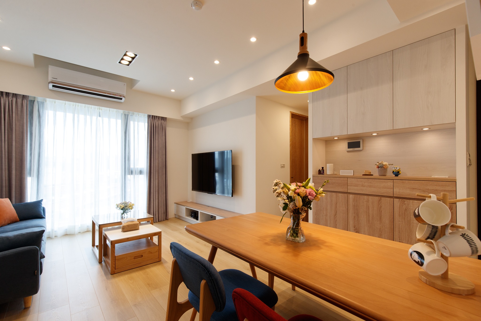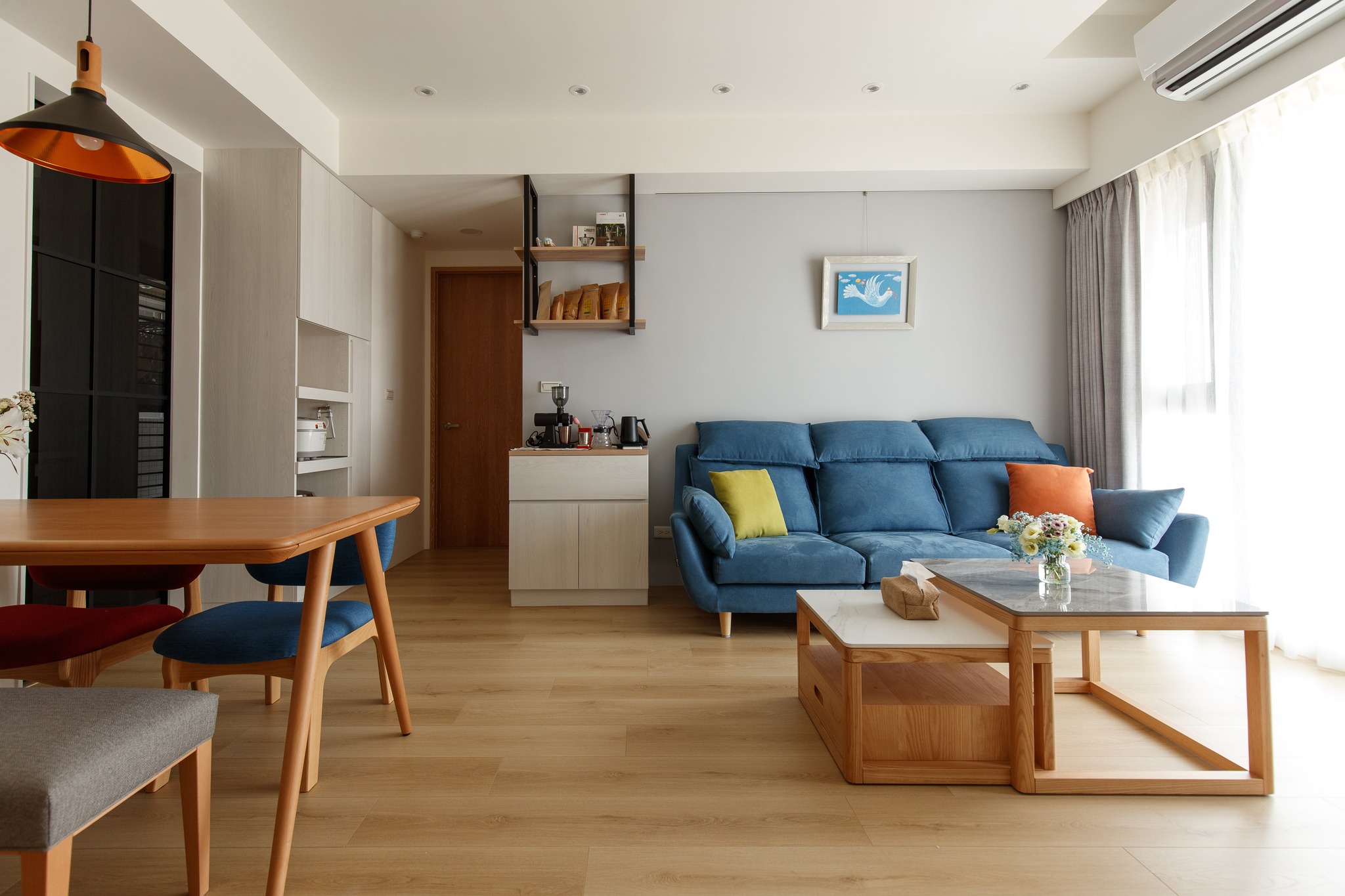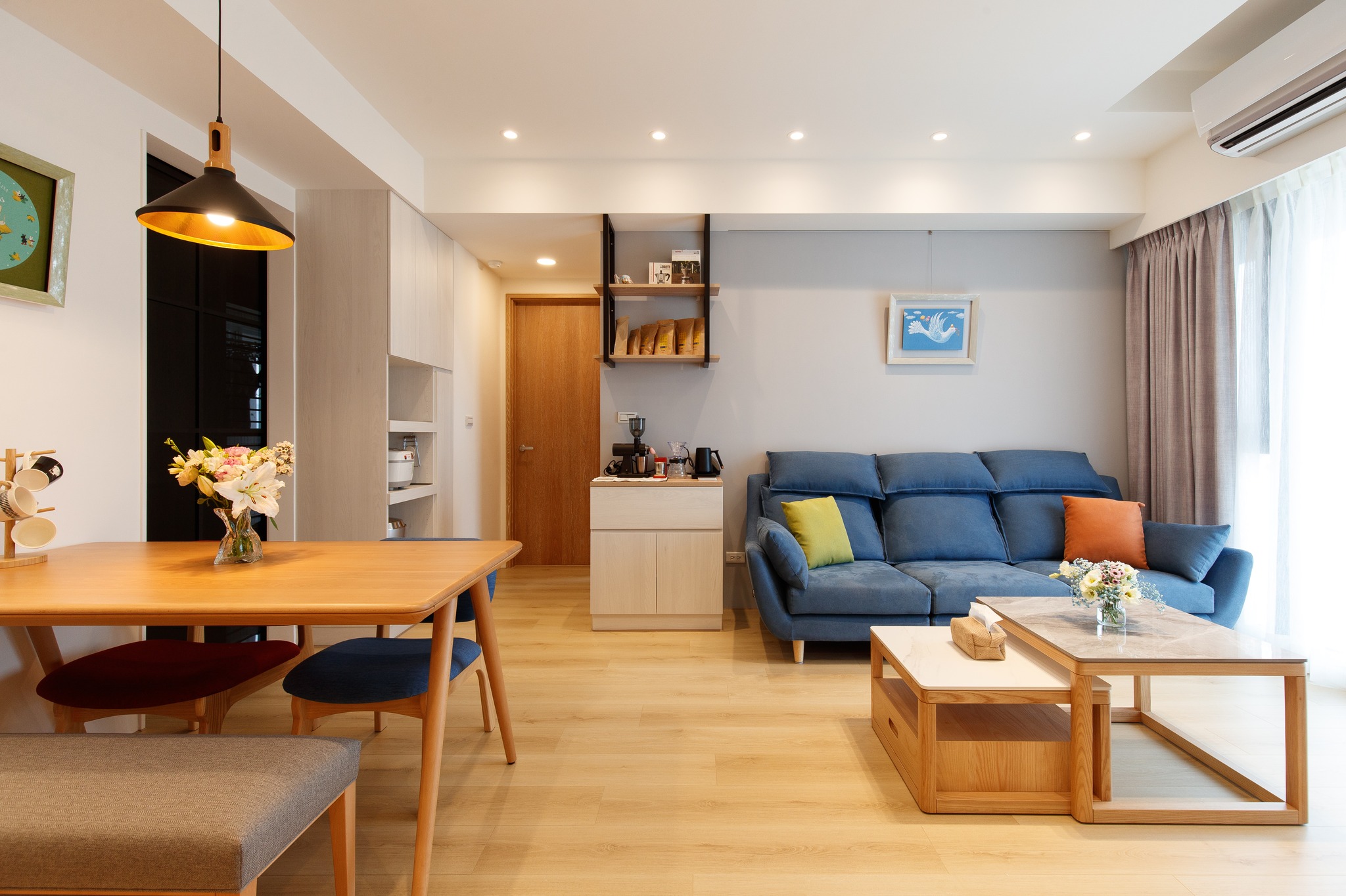 北歐風(fēng)格的家具設(shè)計(jì)強(qiáng)調(diào)簡(jiǎn)單、實(shí)用,通常采用原木和清新的色彩,打破了繁瑣的裝飾,追求線條的流暢和功能的完美結(jié)合。原木家具在北歐風(fēng)格中尤為常見,它們不僅與自然元素相契合,而且價(jià)格相對(duì)親民,適合預(yù)算有限的家庭。