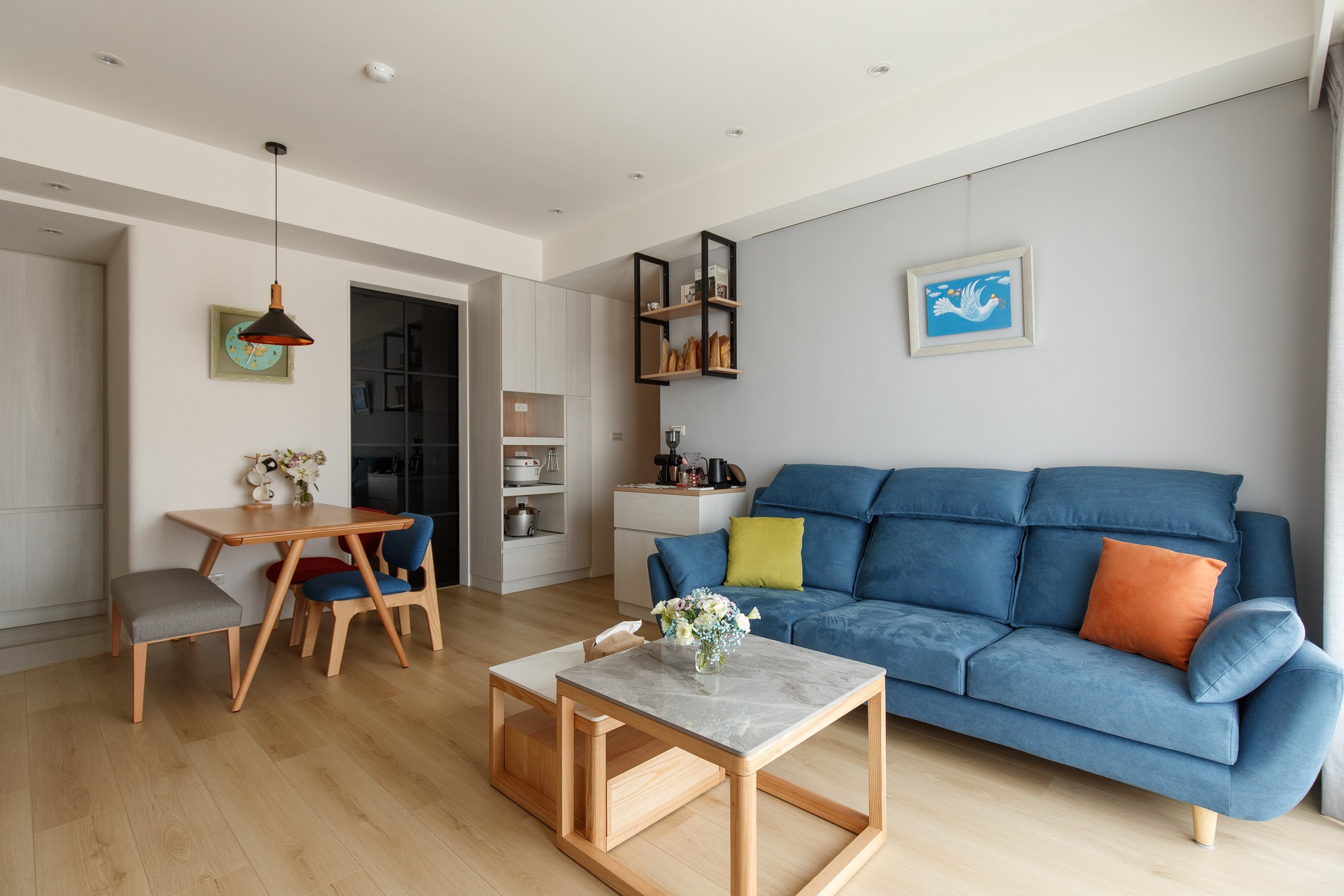 北歐風(fēng)格的裝修以清新自然的色調(diào)為主,主要以白色、灰色、淡藍(lán)色等為基調(diào),營造出寬敞明亮的居住環(huán)境。這些淡雅的色彩使得整個(gè)空間更具開放感,同時(shí)也為后續(xù)軟裝添上了更多的發(fā)揮空間。