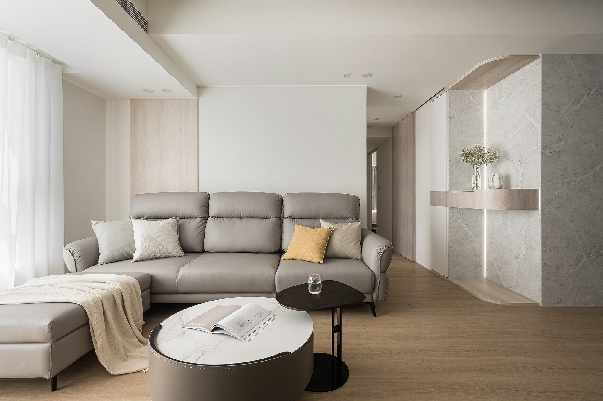選擇淺米白墻面,搭配藝術(shù)畫作或簡約風(fēng)格的墻飾,提升整體品味。